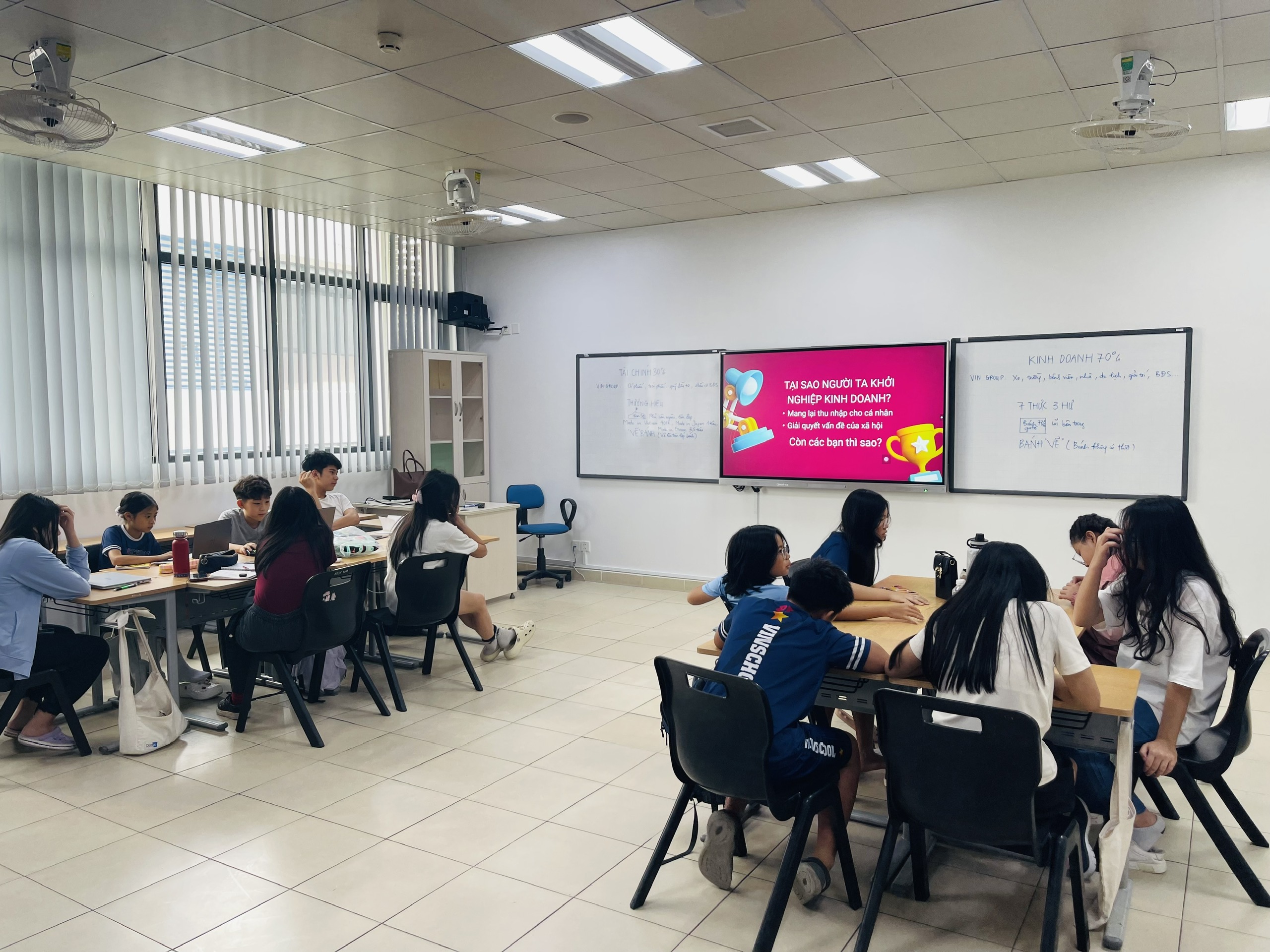 Trong một buổi gọi vốn mô phỏng phong cách Shark Tank, học sinh không chỉ phải thuyết phục “nhà đầu tư” bằng ý tưởng, mà còn cần thể hiện sự tự tin, khả năng trình bày thuyết phục và ứng biến thông minh. Đó là thử thách lớn – nhưng cũng là đòn bẩy để những đứa trẻ rụt rè bước ra khỏi “vỏ kén”.